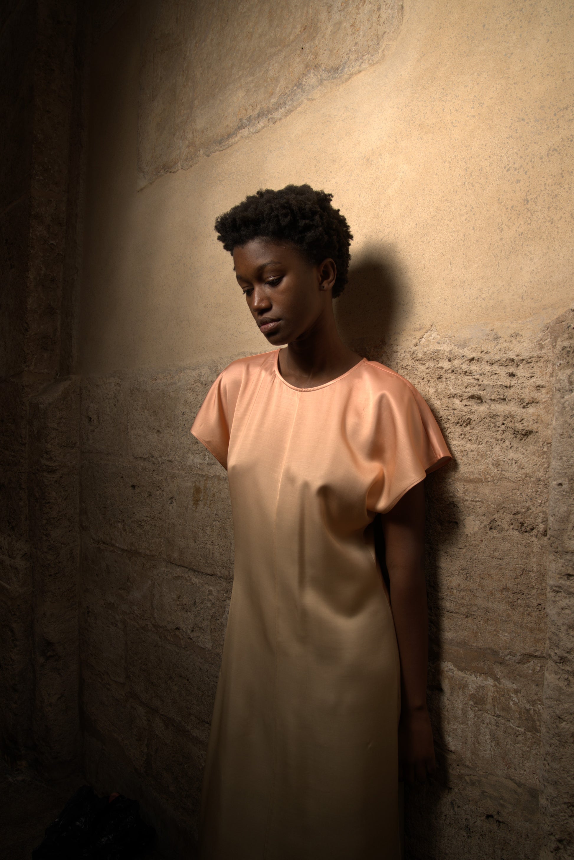 vestido midi satinado degradado